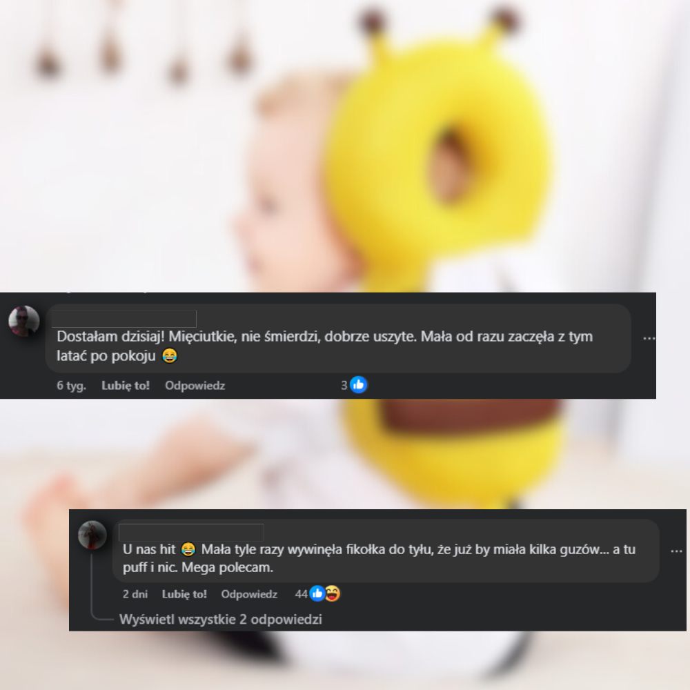 Mała wygląda przeuroczo i w końcu nie płacze po każdym upadku! Cudowny produkt, kupiłabym wcześniej.