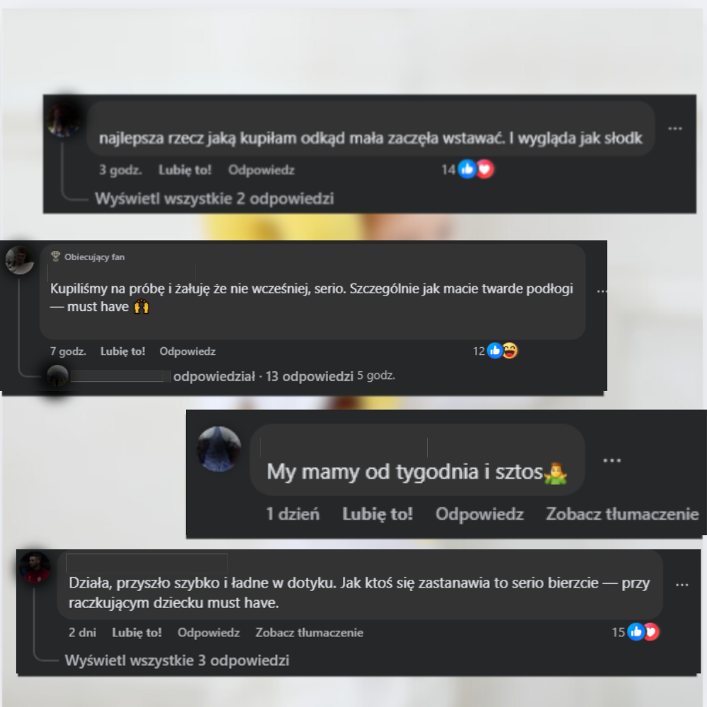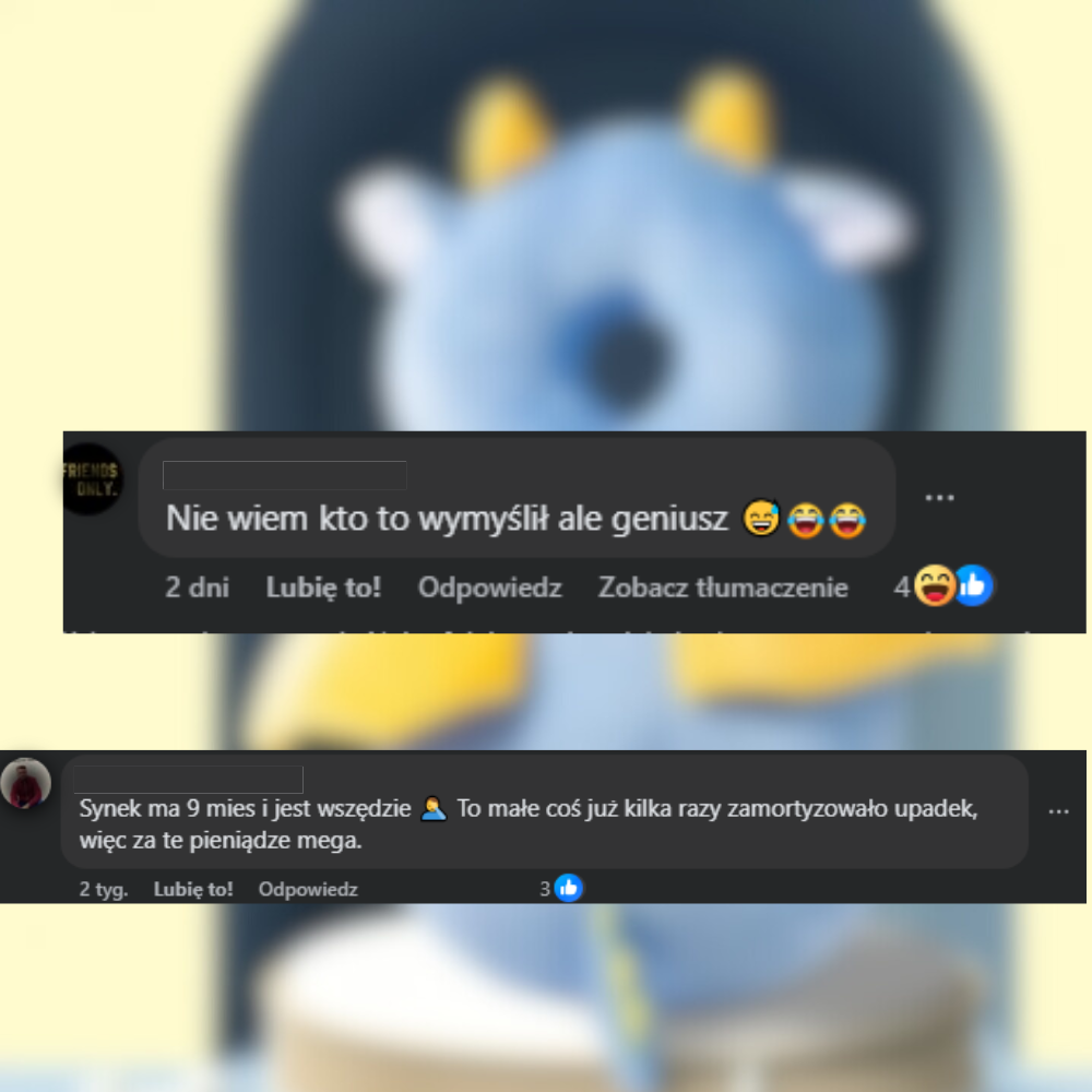 Rodzice nie muszą już cały czas „gonić” malucha wzrokiem — czują, że jego plecki i główka są bezpieczniejsze.